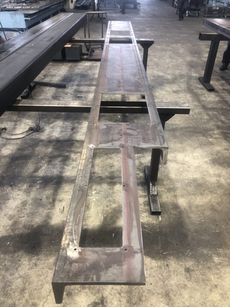 寸法公差が厳しい部材でしたが、溝形鋼380というサイズは大きすぎて3次元レーザー加工機では対応できませんでした。